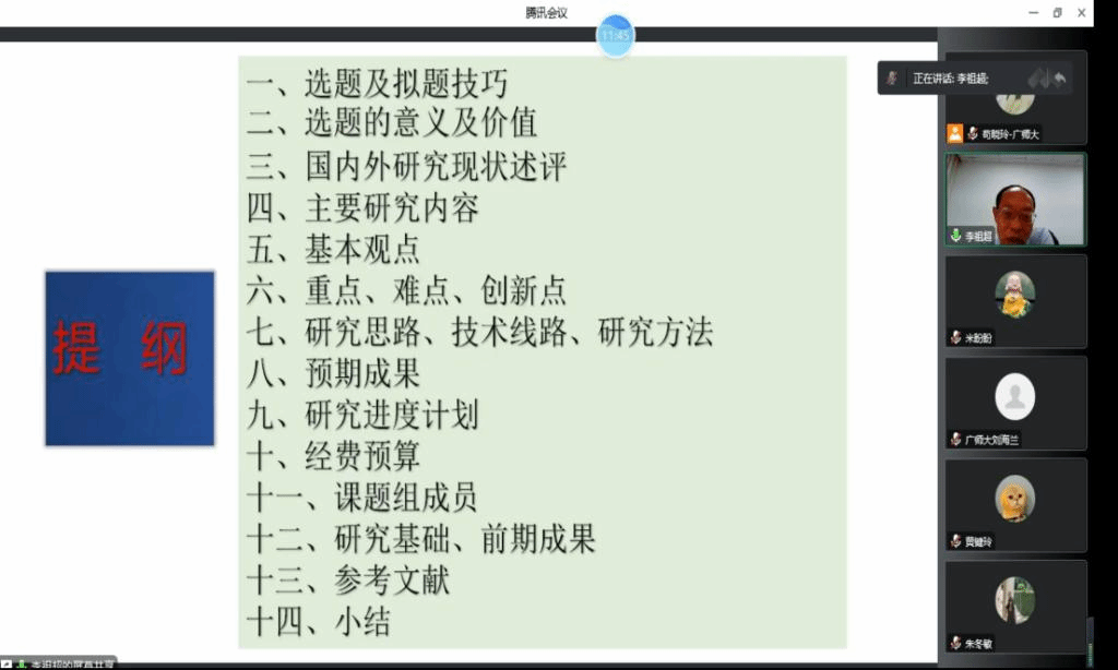 李祖超教授以自己申报课题的真实经验开篇,分享了他的课题申报项目和研究成果。关于课题申报的技巧和策略,李祖超教授围绕选题、文献综述、研究内容、研究思路、研究方法和研究进度安排等方面进行了深度分析,向师生介绍了如何写出一篇优秀的课题申报书。李教授着重强调了选题的意义和价值,详尽地介绍了选题技巧和方法,以及如何在选题上提高课题申报成功率。