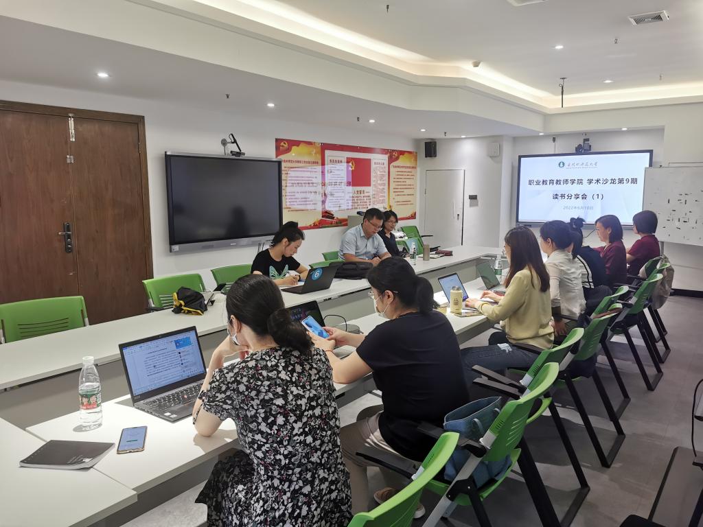 2022年6月10日上午,公司在东校区工业中心715室举行第九期学术沙龙活动,主题为“读书分享会”,围绕“职业教育课程开发”相关书籍进行汇报与研讨。第1期读书分享会由付平和苟晓玲两位老师进行读书汇报。本次活动由刘海兰副经理主持,十名教师参加。