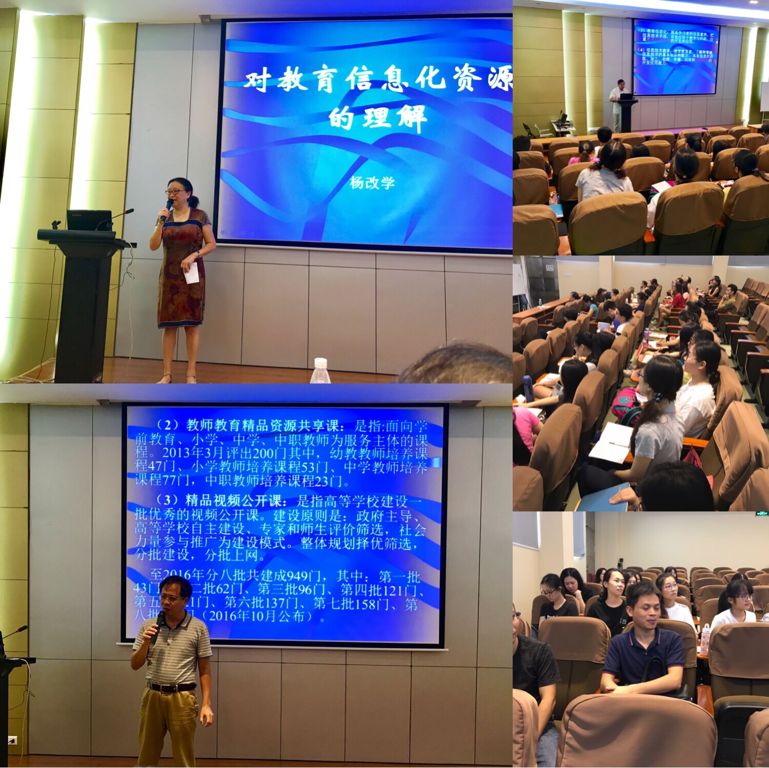 报告会上,杨改学教授紧紧围绕“互联网+教育”的主题,分别从“互联网+教育”的原则、发展目标以及我国教育信息化三年来的六个突破进行逐一阐述与讲解,