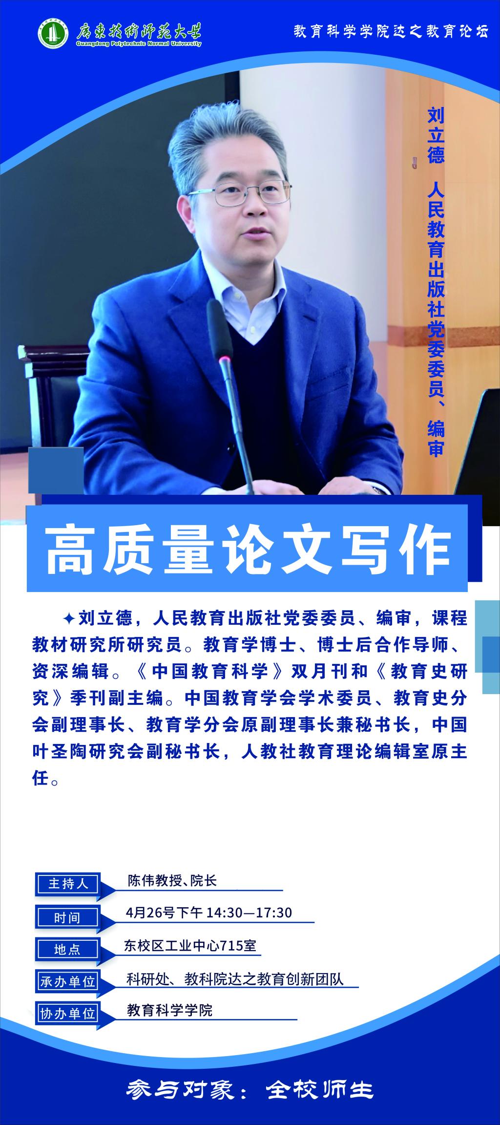 《高质量论文写作》讲座预告
