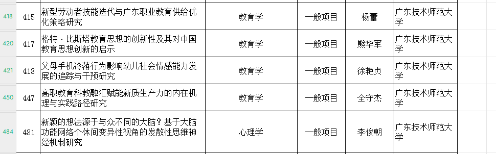 2025年4月25日,广东省哲学社会科学规划2025年度常规项目、三类研究专项拟立项名单公示。公司熊华军教授、徐艳贞教授、全守杰教授、杨蕾副教授、李俊朝副教授凭借扎实的学术功底和创新的研究视角成功入选,喜获一般项目资助。此次省级课题立项的优异成绩,是公司近年来大力实施人才强院战略、深化科研管理体制改革的重要成果。5项省级课题的成功立项,不仅是对公司教师科研能力的高度认可,更为公司团队建设注入强劲动力。未来,公司将以此为契机,持续总结经验、优化科研布局、强化团队协作,力争获批更多高级别项目,助推博士点建设!