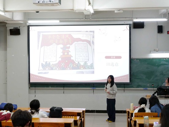 研讨会以“深学思想理论,践行青年担当”为主线,支部七名成员通过心得分享与手抄报展示的形式,系统汇报了阶段性学习成果。戴夏婷、黎凯琳、吴晓彬、黄芷瑶、丁海原、蔡文超、田选意七位同学依次发言,展现了扎实的理论素养和勤于思考的精神风貌。