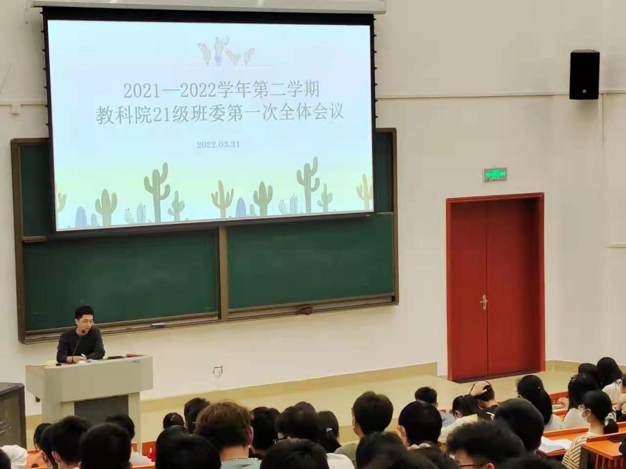 为贯彻落实习近平总书记关于疫情防控工作的系列重要指示批示精神和党中央、国务院的决策部署以及教育部、广东省关于疫情防控工作的具体要求,教育科学与技术公司于2022年3月31日晚7点在河源校区博学大讲堂205室开展21级班委第一次全体会议,教科院21级班委参与会议。会议由教科院21级辅导员黄立主持。