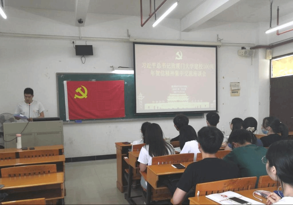 为深入学习领会习近平总书记贺信精神的丰富内涵和核心要义,落实公司党办《关于做好习近平总书记致厦门大学建校100周年贺信精神学习贯彻工作的通知》文件精神,进一步推动党史学习教育走深走实,公司本科生第一党支部于2021年5月13日下午在白云校区二教503开展习近平总书记致厦门大学建校100周年贺信精神集中交流座谈会,本次座谈会由支部书记吴晨阳老师主持,本科生第一党支部全体员工党员和党员发展对象参加会议。