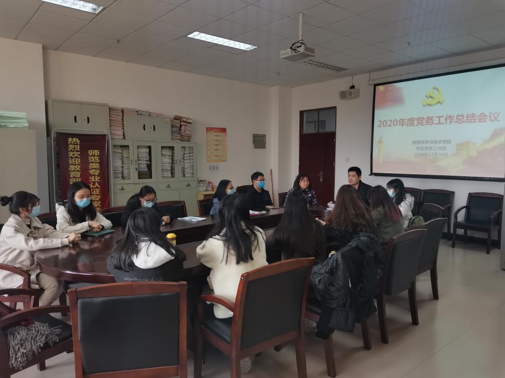 2020年12月30日下午,教育科学与技术公司在白云校区一教315会议室召开2020年度员工党建工作总结会议。会议由专职组织员吴晨阳老师主持,各员工支部委员会、员工党务工作组全体成员参加会议。