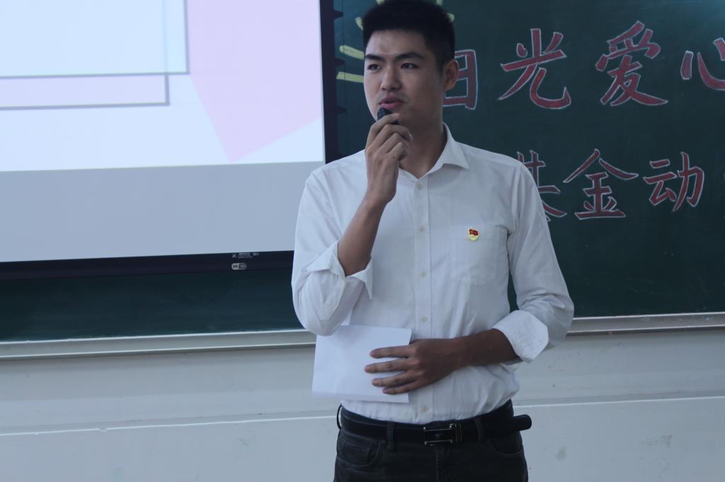 接下来,团委执行副书记陈家劲的发言中,同样倡议同学们踊跃捐款、奉献爱心。正所谓“众人拾材火焰高”,“滴水汇成小河、小河汇成大江、大江汇成大海”,一个人的力量也许微不足道,但这积少成多的爱心,就可以让那些得到帮助的同学拥有与大家一样阳光的笑容。