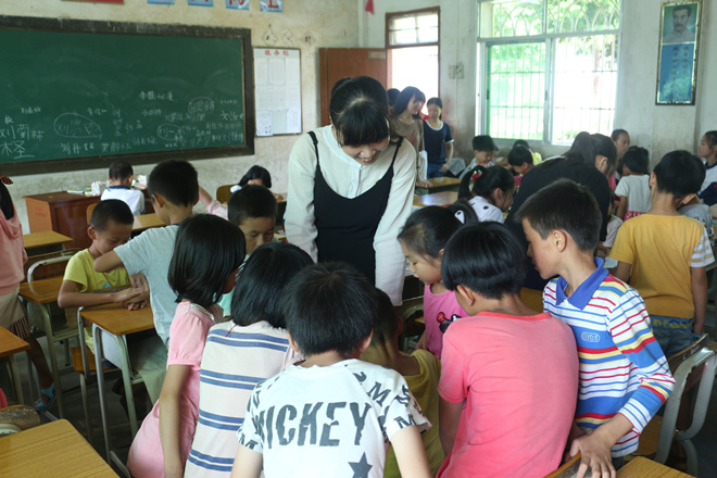 7月10日,今天是昭梦服务队正式开始支教与调研的第一天。早上七点半左右,我们还没有收拾好,上课时间也还没到,但是已有许多孩子在校门外等待。“老师好!”这是我们将孩子迎进校园时听到的第一句话,我们的心头涌起了一种说不出的感受,既兴奋又自豪。我们让孩子们一队队的排列好,由各自班的班主任带到指定的教室开班会。