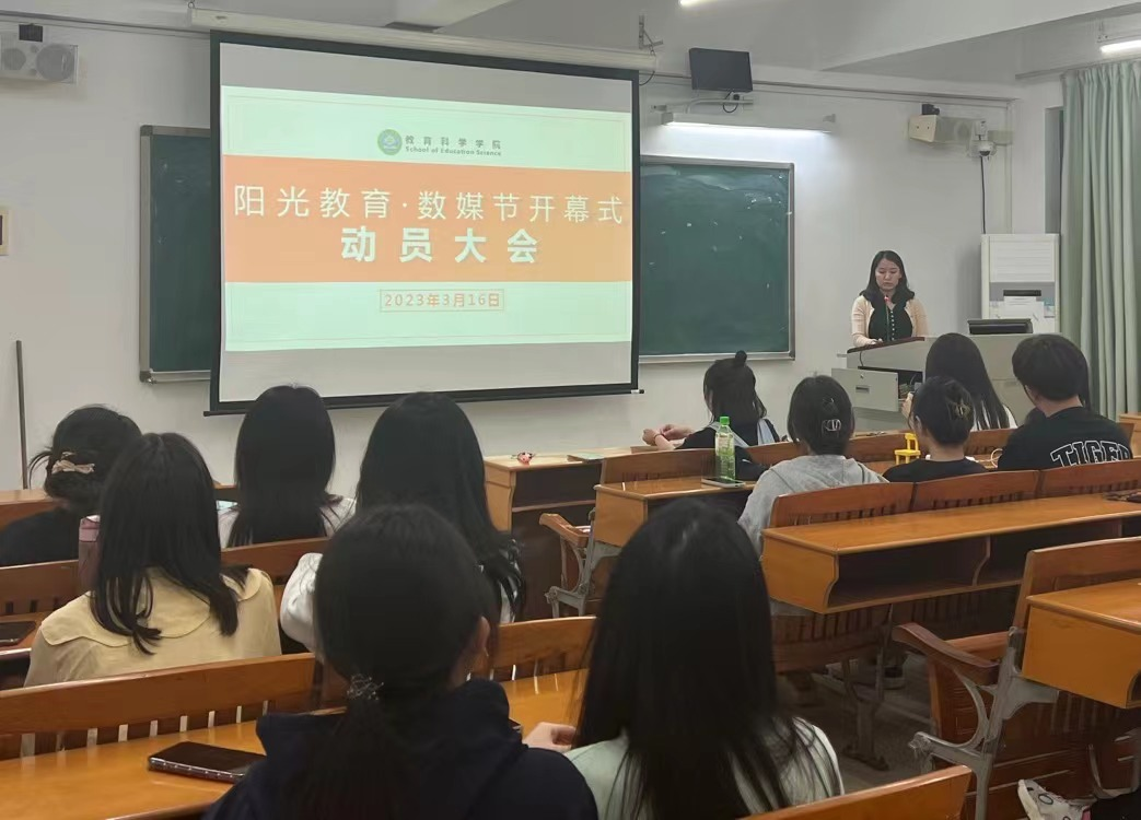 接着,团委书记热依拉老师上台发言。首先,热依拉老师肯定了这段时间团学干部的工作成果。与此同时,热依拉老师鼓励全体与会人员以更饱满的精神,更团结的态度,更激昂的干劲,继续在教科团学的大舞台上绽放自己,发展自己。最后,热依拉老师强调本次阳光教育·数媒节举办意义之重大。她指出,当前社会鼓励并支持数字赋能发展,而数字赋能与老员工相结合,是当前高校发展的一大热点。阳光教育·数媒节的召开,以数字赋能为主题,鼓励教科院全体员工充分迸发自身活力与创造力,积极参与本次数媒节活动,在锻炼自我能力的同时,为自身发展找到契机。因此,热依拉老师对团学干部们提出了殷切期望,鼓励道,身为团学的一份子,要牢记自身使命与责任,不仅要完成好工作,促进数媒节的顺利召开,更应主动利用好机会,通过数媒节拓宽自身的见识与认知,在教科团学赋予的舞台上发光发热。