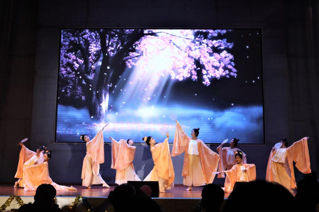 随之而来的是同学们精彩的文艺表演,在璀璨的聚光灯下同学们以轻快舞步展现富有春春活力的姿态,民族舞蹈更具特色与魅力,师生同台以天籁般的歌声唱出心中的火光与热爱,瞬间将整个开幕式气氛推向高潮,赢得全场观众雀跃欢呼和热烈掌声,充分展现了公司青年学子阳光、自信、热爱生活的精神风貌,为数媒节系列活动开了个好头。同时活动现场设置两轮互动抽奖环节,同学们积极参与其中,体会游戏的乐趣,身心也在欢声笑语中得到放松。