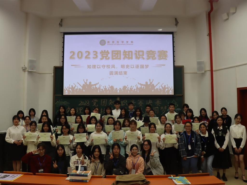 薪火传承守初心,凝心聚力担使命。本次党团知识竞赛让同学们更加了解中国共产党和中国共产主义青年团的历史,也更加明白自己作为新时代青年人的责任与担当,愿广大教科学子都勇做走在时代前列的奋进者、开拓者、奉献者,持续用党的二十大精神武装头脑、指导实践,为实现中华民族伟大复兴的中国梦贡献属于自己的智慧与力量。