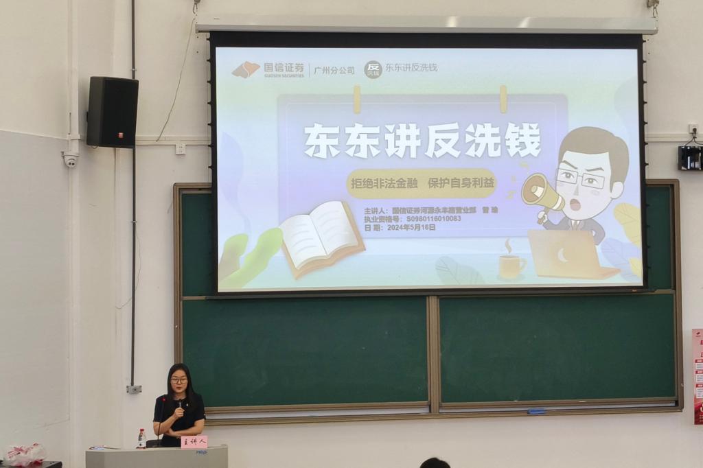 国信证券反洗钱专员曾瑜宣讲了常见的洗钱方式套路、洗钱的危害性、关于洗钱犯罪的法律知识以及如何辨别非法金融行业活动等,她通过视频、案例等提醒我们要坚守法律底线,避免掉入洗钱诈骗陷阱,防范AI新型诈骗,保护自身利益。