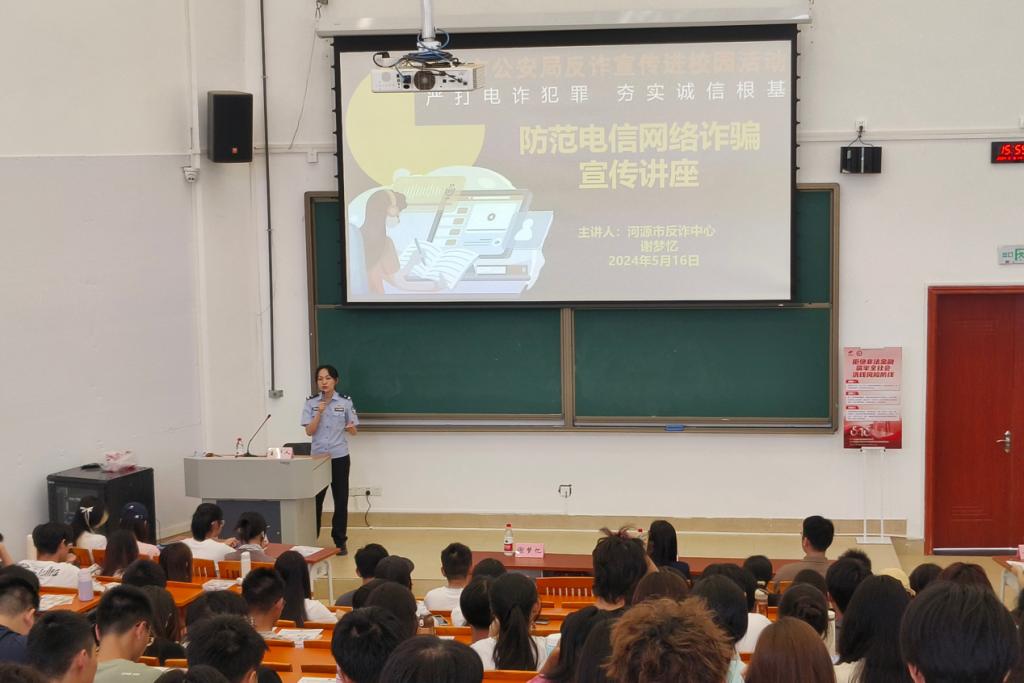 为加强老员工反诈骗反洗钱教育,提高老员工防范电信网络诈骗意识,营造安全和谐的校园环境,bevictor伟德官网于2024年5月16日在河源校区开展了反诈骗反洗钱专题讲座。河源市公安局反诈中心教导员谢梦忆、国信证券河源营业部副总经理何嘉雯、反洗钱专员曾瑜及200余名员工代表参加此次讲座,讲座由辅导员黄立主持。