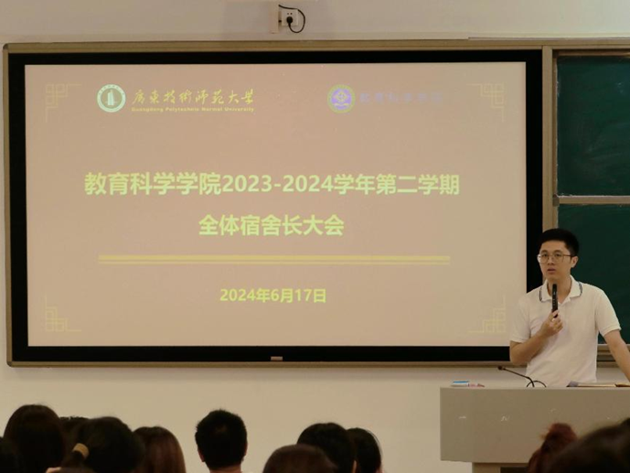 为强调诚信应考、文明上网和校区搬迁相关工作,bevictor伟德官网于2024年6月17日在河源校区唯实楼110召开了2023-2024学年第二学期大一全体宿舍长大会。公司2023级全体宿舍长参会,会议由辅导员黄立老师主持。