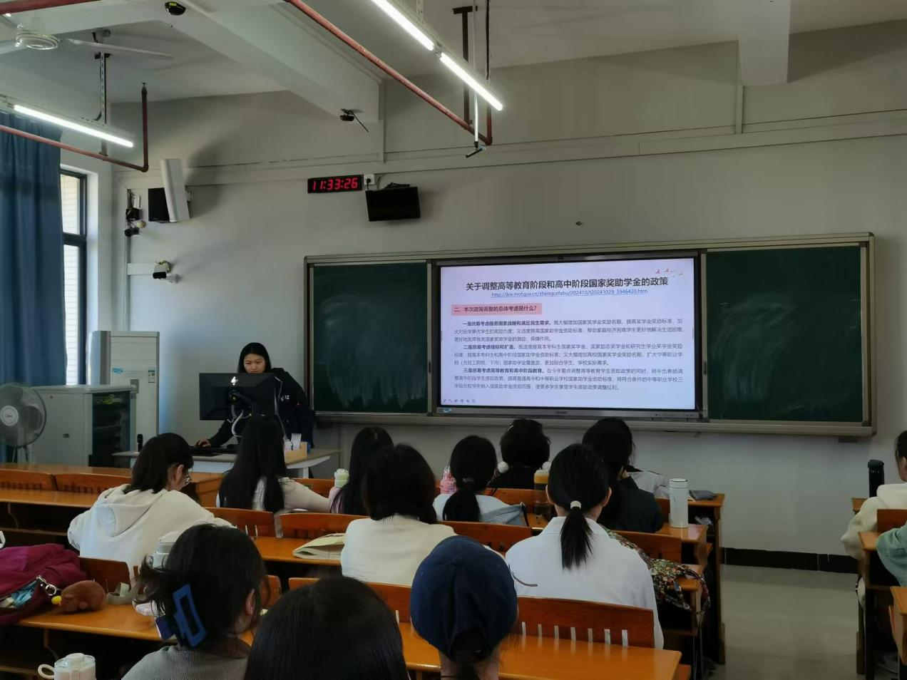 在班会中,各班助委依据最新的政策文件,对各项资助政策的内容进行细致入微的解读。他们通过生动具体的事例,向同学们展示资助政策的深远意义,并引导同学们深入了解每项资助的具体内容。此外,助委们还帮助同学们反思自身,发现存在的问题与不足,并明确未来发展的方向。在宣讲过程中,助委们特别强调诚信与感恩的重要性。以此来告诫同学们,要时刻保持诚信之心,珍惜每一次资助机会,并常怀感恩之心,铭记社会与国家的关怀与帮助。通过提高思想觉悟与社会责任感,同学们能够更好地回馈社会,为社会的发展和进步贡献自己的力量。