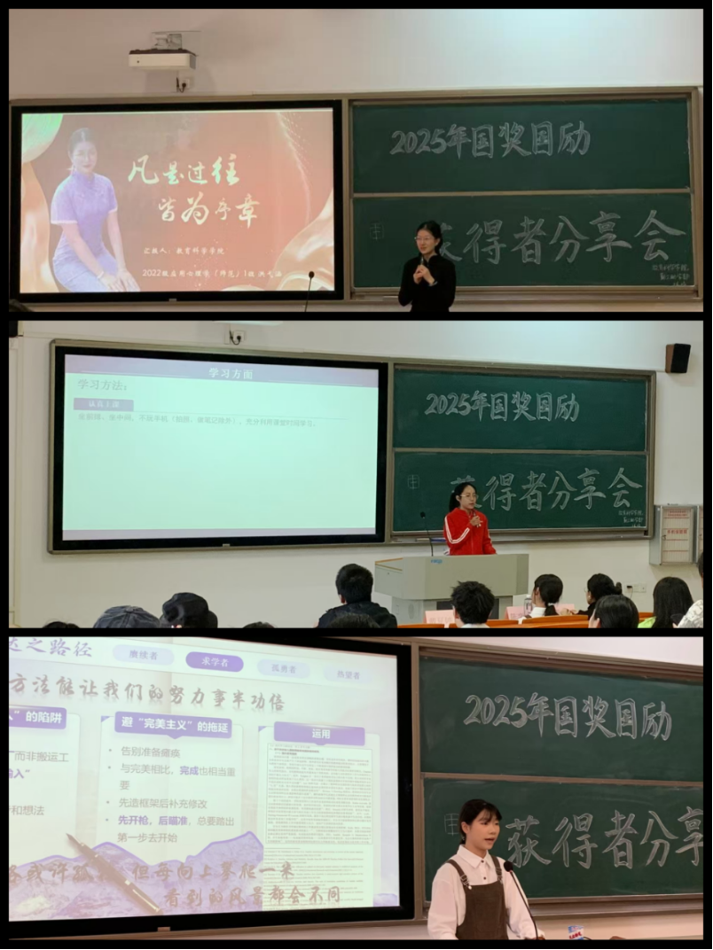 活动邀请了三位在2024-2025学年表现卓越的同学作为主讲嘉宾:两位国家奖学金获得者——来自2022级心理师1班的洪弋涵同学与2023级学前3班的陈奕敏同学,以及一位国家励志奖学金获得者——2023级学前师4班的戴夏婷同学。