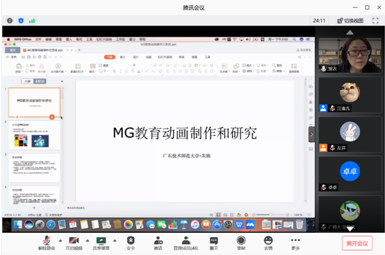 教育科学与技术公司朱姝教授以“MG教育动画制作与研究”为报告主题,结合一系列生动的电影动画、MG动画例子,从历史发展进程视角下全面介绍MG动画在各个领域的应用。通过充分展示公司产品领域中MG动画所能带来现场感、动画感、情景感及不可替代性,激发学员探索教育MG动画作为未来教学辅助工具之一的重要内涵,为研究生们树立下MG动画易学、易做、可接触的思维与印象。