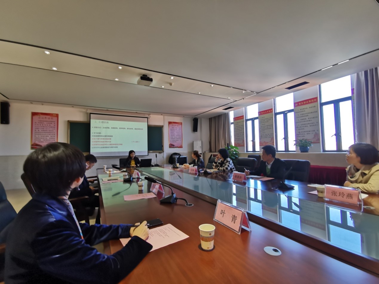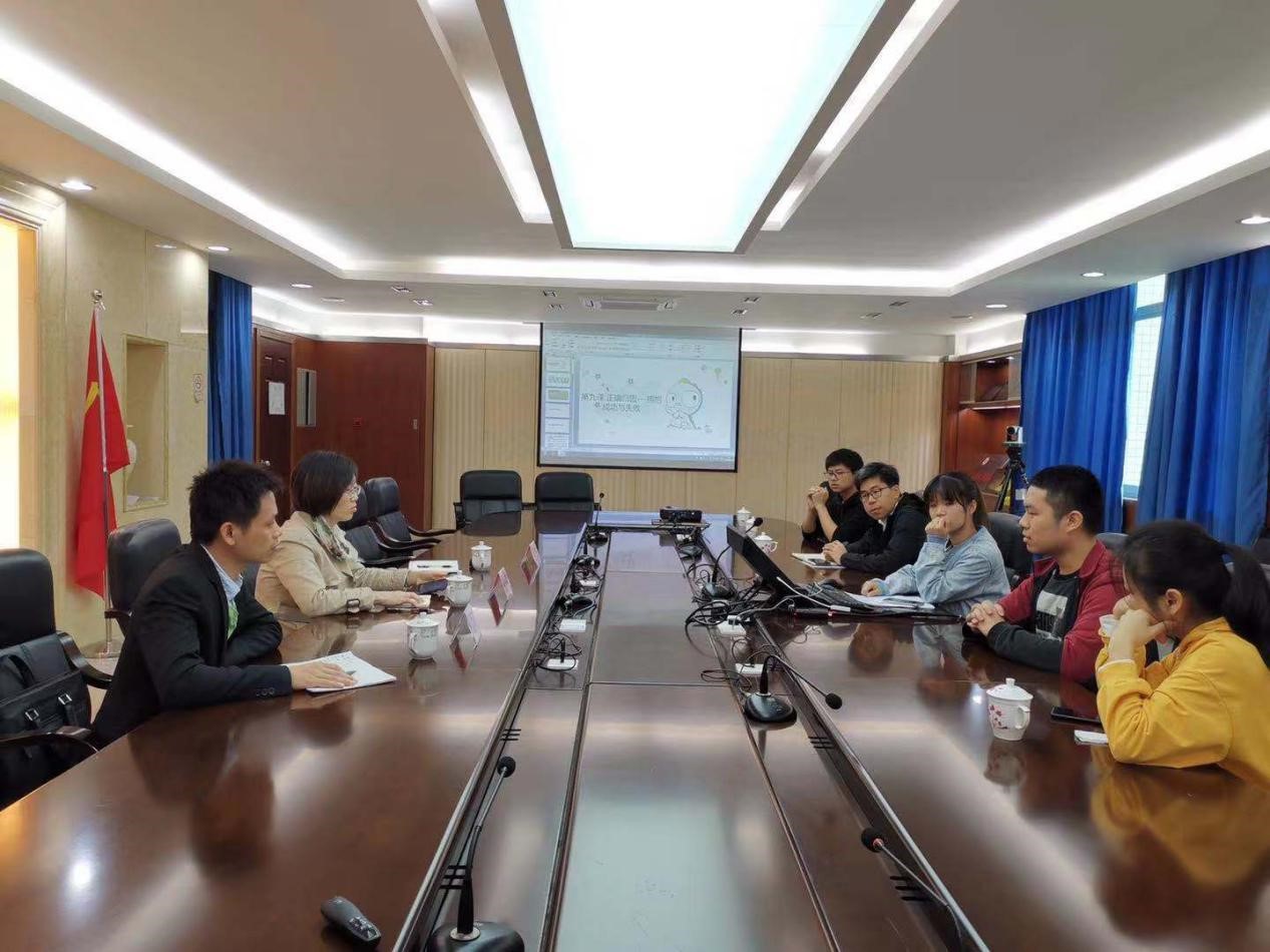 汇报结束后,我系童心同学对此前开展的以“正确归因”为主题的心理健康教育课进行说课。整个说课过程十分流畅,童心同学以国足的案例作为课堂导入,随后展开介绍有关于归因的概念,以及归因的偏差的介绍,随后给予员工案例进行分析,整个说课过程结构完整。随后,张玲燕主任分析评价了童心同学说课的优点和需要改进之处,整体的说课效果较好。最后,双方自由交流,并希望能在教研、科研的方向进行更深入的合作,并对双方进一步合作表示期许。