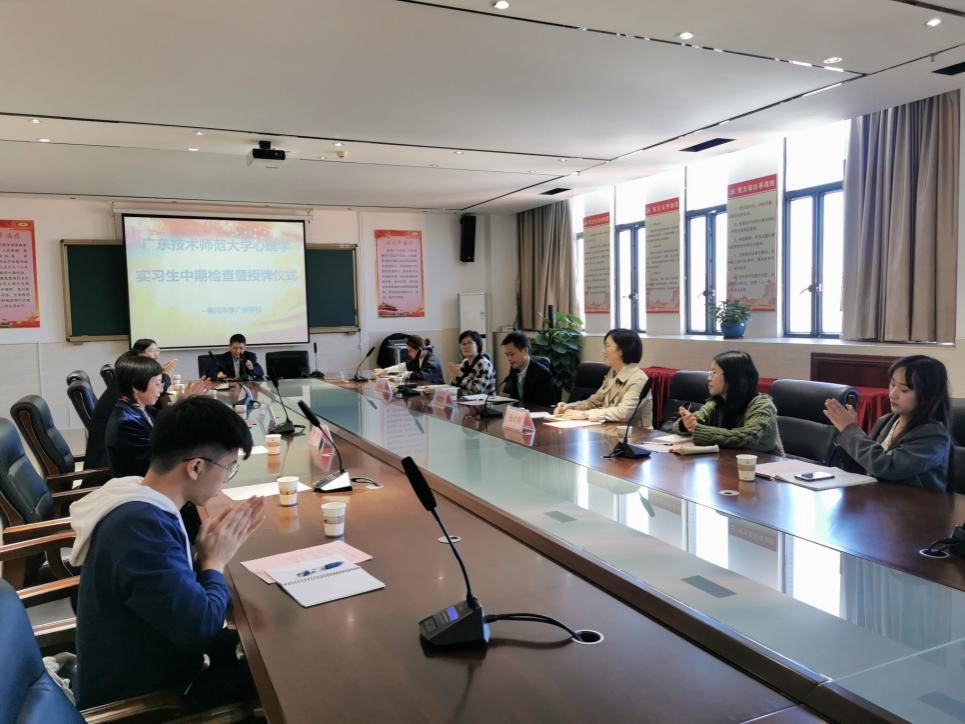 随后,教师一行来到黄冈中学广州公司进行教育实习基地挂牌仪式及实习中期检查。公司杨文化副董事长、叶青董事长助理、马海军主任、曾思华老师出席会议。