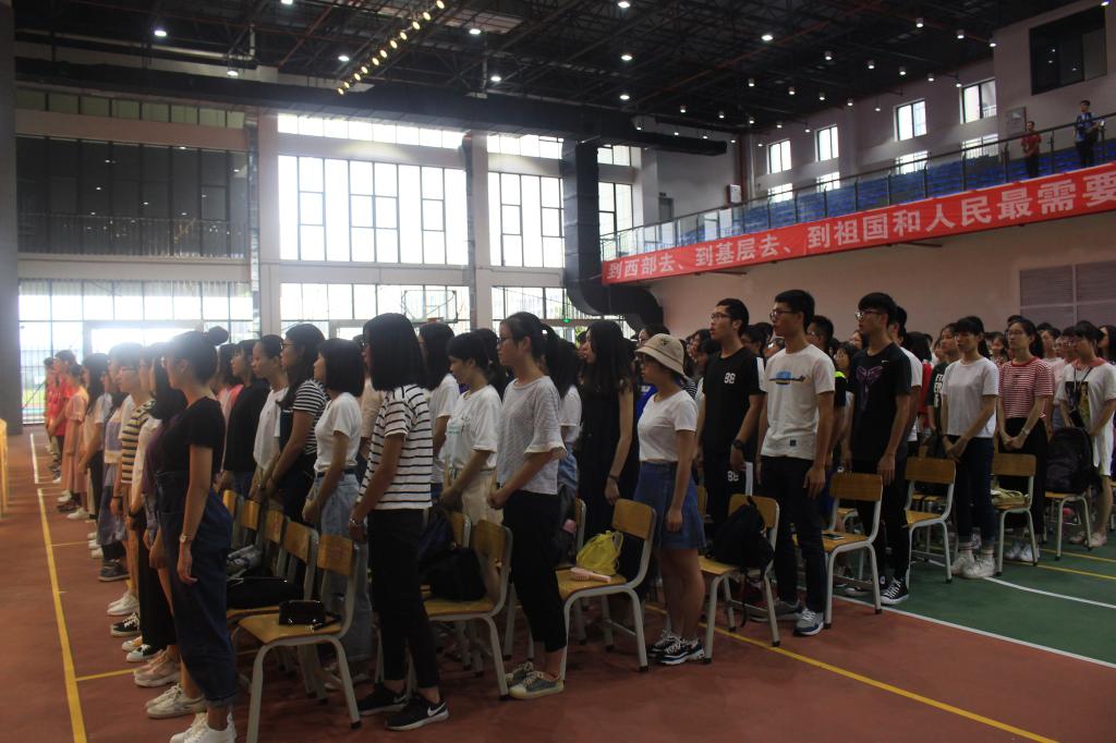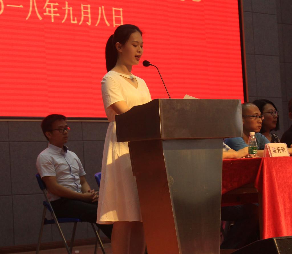 再接着2018级新生代表曾世骄同学代表全体新生登台发言。她首先感谢了为他们的成长付出艰辛劳动的父母和老师,并表达了对进入广东技术师范公司开始大学学习的美好憧憬。她号召全体新生在中外优秀文化知识的学习中,更多思考关注当下中国社会现状,勇敢追求真知和梦想。曾世骄同学代表全院534名新生庄严宣誓,用热血与汗水,铸就无悔的青春。让自己无愧于广东技术师范公司员工的名字,让祖国为我们骄傲,让教育科学与技术公司,因我们而拥有新的自豪。