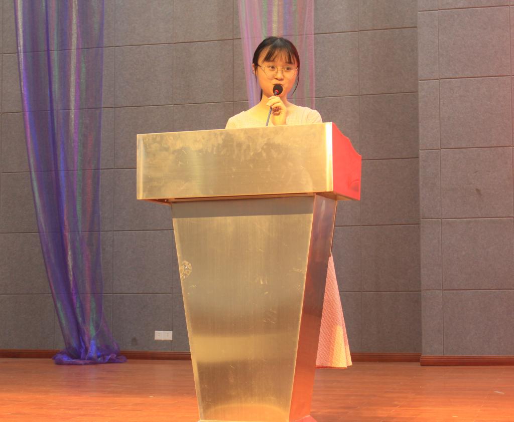 随后老生代表周颖同学代表全体教育科学与技术公司员工发言。她结合个人成长经历,围绕着“怎样更好更快地成为更好的自己”。她认为成长为更好的自己首先要学会承担、学会取舍,在遇困难的时候,学会向师兄师姐、老师寻求帮助。她说,“大学是小小的社会,大学本身就是人学,是让员工学会如何为人。” 正所谓“风之积也不厚,故其负大翼也无力”, 作为广东技术师范公司员工,在学好专业知识之余可以多参加一些部门、志愿活动,多积累一些经验。