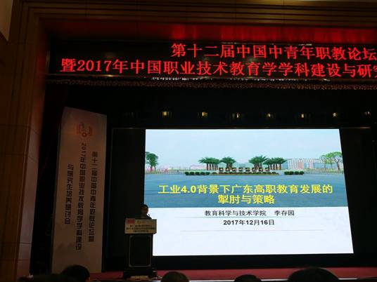 公司教科院年轻教师李存园老师提交的论文“工业4.0背景下广东高职教育发展的掣肘与策略”,在大会300多篇征文中脱颖而出,制定作为大会主题发言,向与会代表交流了工业4.0背景下广东省高等教育发展职业教育发展的问题,并提出了具体的策略,展现了公司青年教师扎实的学术基础和敏锐的学术思维。自由讨论环节,公司师生积极参与讨论。陶红教授对职业教育科研成果的地区分布不均问题提出个人看法,认为经济发展与职业教育理论研究应该密切联系,理论成果需要为经济服务,得到与会代表的认同。