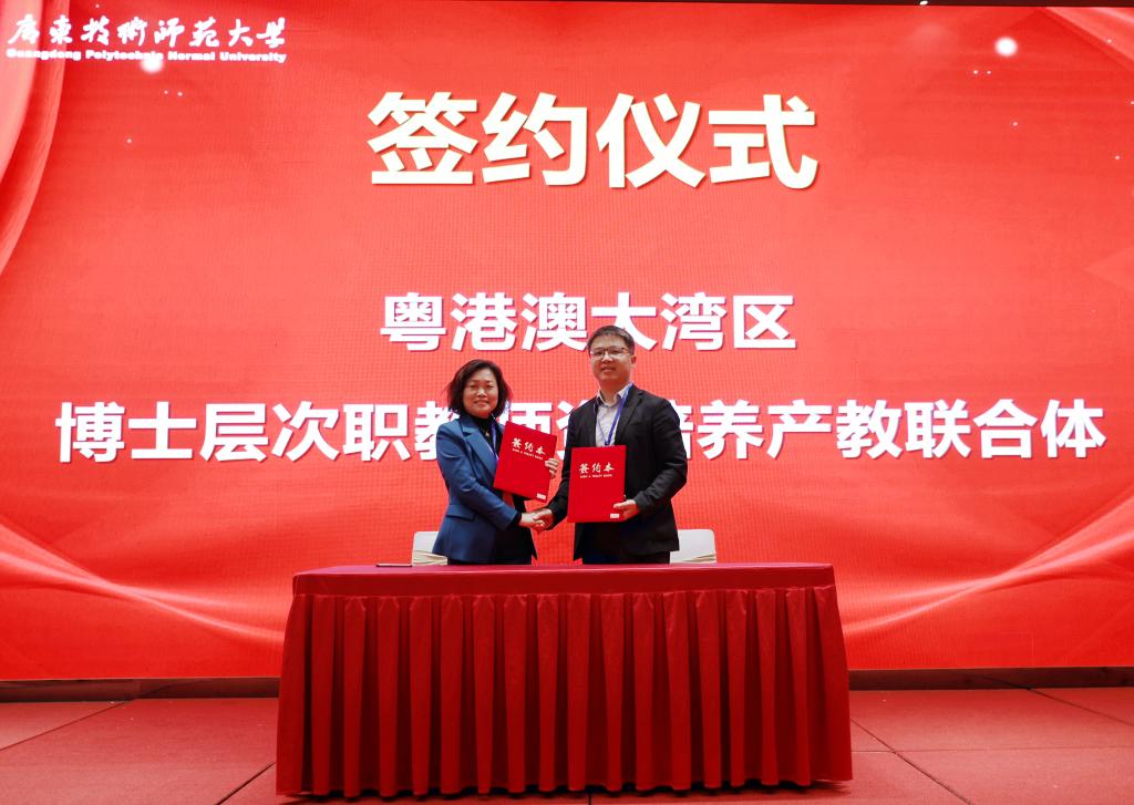 会议举行了战略合作签约和揭牌仪式。在全体与会嘉宾的共同见证下,粤港澳大湾区博士层次职教团队培养产教联合体成员单位正式签约,并正式揭牌成立粤港澳大湾区博士层次职教团队培养产教联合体。