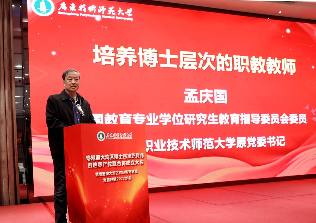 “制造业是大湾区产业的鲜明底色,也是大湾区推进高质量发展的关键所在。推动粤港澳大湾区产业升级不仅需要应用型、高技能的职业人才,更离不开高层次、高素质职教团队为人才培养提供强有力的支撑。”教育部教师工作司翁波副司长指出,粤港澳大湾区博士层次职教团队培养产教联合体,创新性地推出政府、公司、科研机构、企业、行业产业协同培养体系,进一步增强职教团队培养的开放性、广泛性、跨界性和参与度,必将成为深入贯彻党的二十大精神,深化职普融通、产教融合、科教融汇的生动实践。他希望联合体积极探索“双师型”教师培养的新路径、新模式,打造博士层次职教团队培养产教联合体“湾区样本”,为培养高素质“双师型”工匠之师和教育强国战略的实施作出新的更大的贡献。