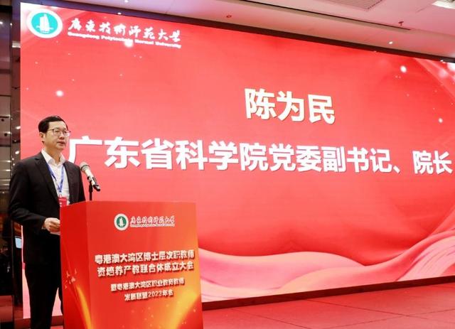 在全体与会嘉宾的共同见证下,粤港澳大湾区博士层次职教团队培养产教联合体成员单位正式签约,并正式揭牌成立粤港澳大湾区博士层次职教团队培养产教联合体。