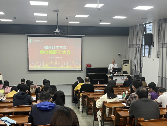 随后,公司领导对自己分管的相关工作进行年度总结并做了2024年相关工作部署。吴水爱副书记对员工工作,研究生、本科生相关工作做了总结并对来年工作做了部署。谢德新副经理就本科教学事务、专业建设、新专业招生、学前教育卓越班等相关工作做了总结。刘海兰副经理总结了公司去年研究生工作的成绩,提醒大家继续做好研究生教学中日常工作,注重提高公司产品质量,并强调下学期研究生答辩相关事宜。冯帮副经理对科研、实验室建设、培训、会议组织、社会服务等工作做了总结汇报并倡导大家进行有组织的科研,鼓励全员教师继续积极申报各类课题。