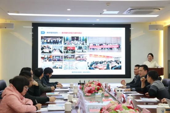 1月23日,韦德官方网站副董事长邓文新带领教科院老师一行赴职教桥参观交流,在蔡宗山副总的陪同下,参观了职教桥的产教融合数字化赋能中心,了解数字产品生态、教研服务体系、以及成果案例等,并围绕“产教融合、数字化、大数据、产教对接谱系、访企拓岗”等议题展开座谈交流。