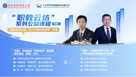 通过本次《职教云坊》系列专题课程,参会老师们不仅聆听了来自专业权威的学术深度解读,更拓展了对“双高双优”建设和“产教对接谱系”研制的认识,相信这将有力推动相关领域的发展与创新。