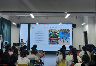 廖琳静副园长与师生们分享了河源市直属机关幼儿园在自主游戏课程实践研究中的宝贵心得与独到体会。她不仅深刻剖析了自主游戏的重要价值,还全面阐述了以客家文化为根基的“古邑文韵”自主游戏课程体系,包括课程背景、课程历程、课程概念、课程网络、实施及评价等多方面。通过精心设计的课程内容和具体案例,她生动地展示了如何将地方文化元素巧妙地融入“古邑文韵”自主游戏课程中,并精心打造出独具特色的园本课程。最后,在交流讨论环节,同学们围绕“古邑文韵”自主游戏课程在乡镇的推行策略、民办幼儿园资金短缺的应对策略,以及古邑文韵与自主游戏的融合之道等方面问题与廖园长进行深度交流,廖园长针对同学们提出的问题进行了认真解答,并给予他们悉心的指导和提出中肯的建议,现场氛围热烈且充满活力。