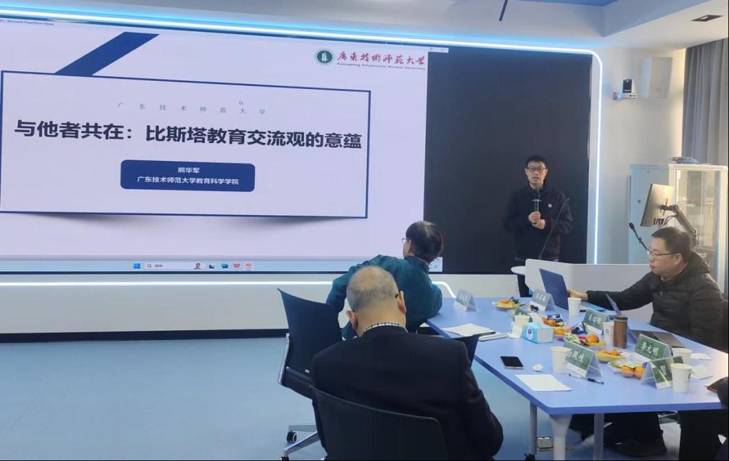 公司熊华军教授作了题为“与他者共在:比斯塔教育交流观的意蕴”的报告。他基于比斯塔对符合论的教育交流观、融贯论的教育交流观以及实用论的教育交流观的批判性反思,提出存在论的教育交流观,即与他者共在。
