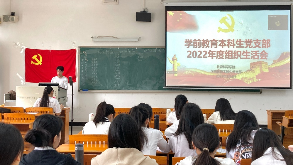 为进一步深入贯彻落实习近平新时代中国特色社会主义思想和党的二十大精神,学前教育本科生党支部于2023年3月4日在三教207教室召开了2022年度组织生活会。会议由党支部副书记植葵森同志主持,全体党员参会。