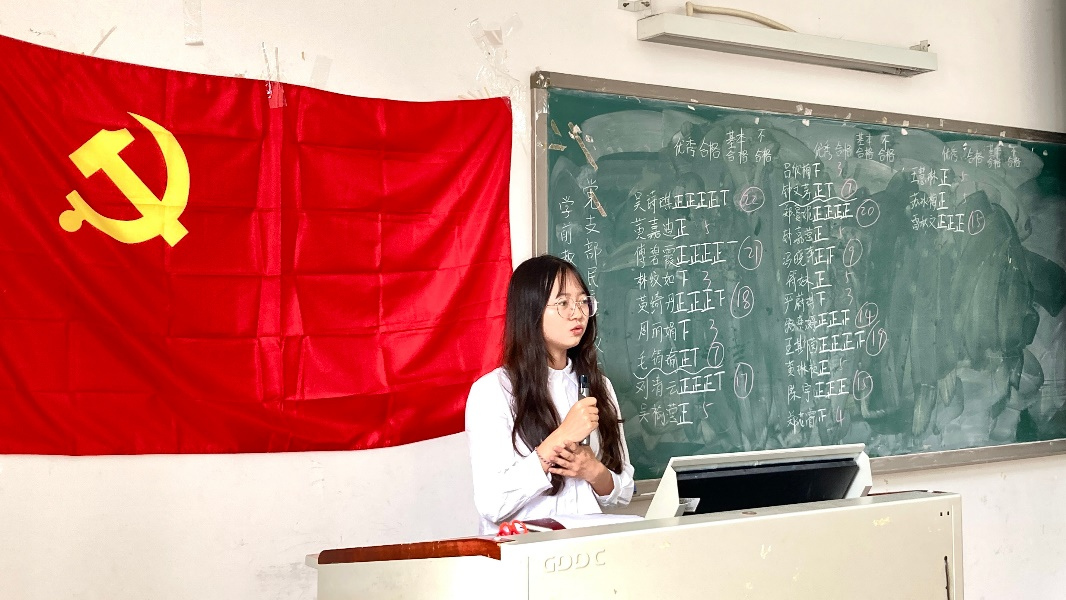 (图:学前教育本科生党支部副书记植葵森同志主持)