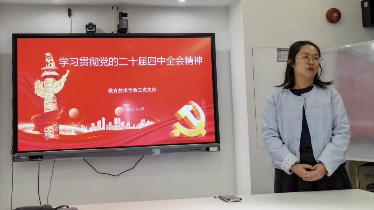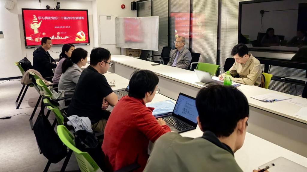 2025年11月13日下午,教育技术学教工党支部在东校区工业中心715室举办学习贯彻党的二十届四中全会精神会议。会议由支部书记赵玉同志主持,公司党委书记张旭日出席。