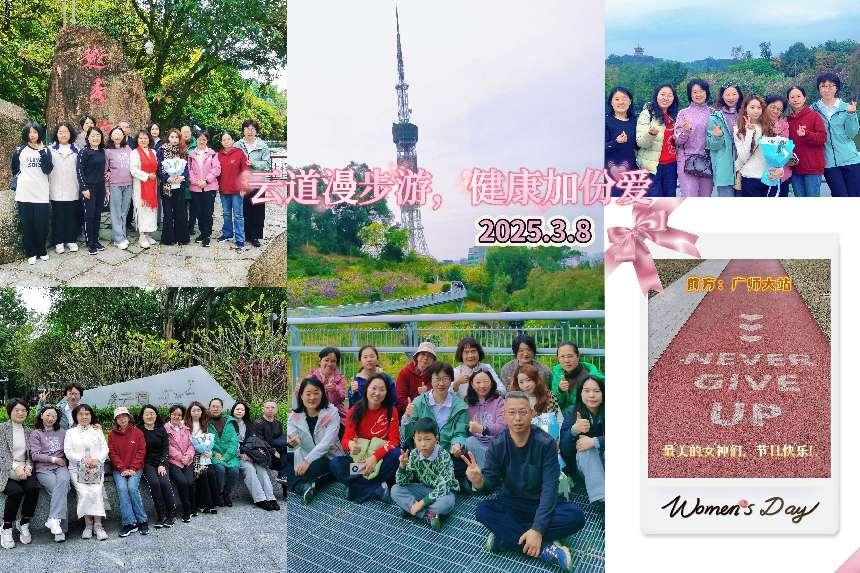 如果说教学技能竞赛展现了教师们的专业风采,那么38日的云道漫步活动,则是她们对生活热爱的生动诠释。当天,20多位女教师从广州云道越秀公园出发,一路漫步经过城央越秀公园、雕塑公园、麓湖公园。在春日的暖阳下,她们穿梭于花海之间,感受着花城3月的浪漫与生机。漫步不仅是对身体的锻炼,更是对心灵的滋养。它让教师们在忙碌的工作之余,有机会放慢脚步,欣赏生活的美好,为健康“加份爱”。