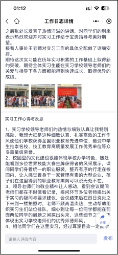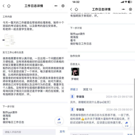 图 6 罗珊妮同学的实习工作日志优秀范例与老师点评