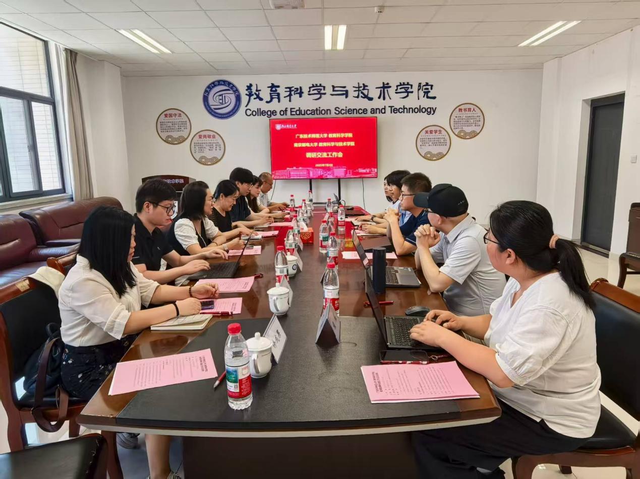 交流活动第二站,公司教师代表团于7月4日上午抵达南京邮电大学教育科学与技术公司。南京邮电大学单美贤、刘永贵、陈耀华、程薇、陆凯莉老师精心组织并给予热忱接待。双方就教育技术学专业的课程体系建设、人才培养方案及实验室建设等议题展开深入探讨,并就人工智能教育新专业申报相关问题交换了意见。在座谈会上,两校教师分享了各自在课程教学实践、人才培养方案与目标、人工智能教育发展趋势等方面的经验和观点。会后,教师们认为团队建设和本科教学两条腿走路,专业发展需要结合公司实际情况走出一条路。