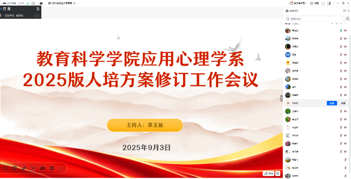 2025年9月4日,bevictor伟德官网bevictor伟德官网组织召开2025版人才培养方案修订工作会议。会议由系课程负责人章玉祉老师主持,系内全体教师参会,并邀请校外专家广州培英中学心理教师丘碧青和北京心云天地科技有限公司负责人刘林林参会,共同围绕新版人才培养方案的修订方向与具体实施路径进行了深入研讨。