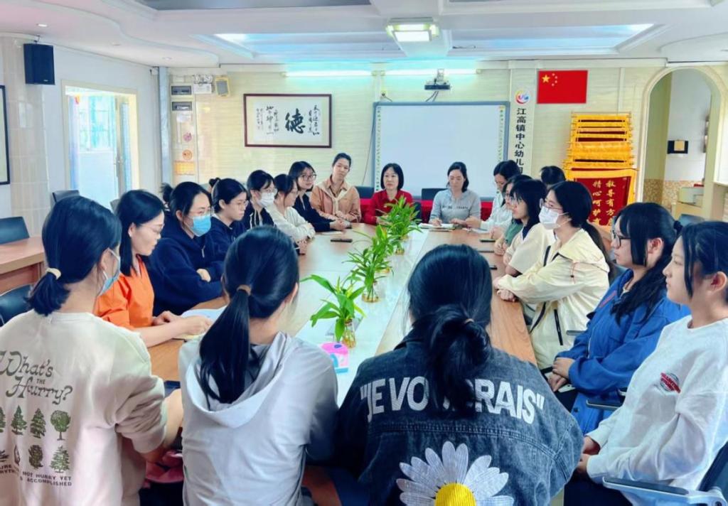 公司实习指导老师贺玲分别与中心、新世纪幼儿园园长、德育主任、各年级组长及实习生共同参与了检查座谈会。会议伊始,贺玲老师首先对江高中心、新世纪幼儿园的园长及指导老师们表示衷心的感谢,并阐明了本次中期检查的目的。中心、新世纪园长均指出,实习活动是一种“双赢”的合作,既为幼儿园注入了新生力量,也为同学们提供了宝贵的实践平台。中心、新世纪幼儿园特别安排小、中、大班三位年级组长根据日常观察与各班教师反馈,对实习生表现进行了系统、细致的点评。