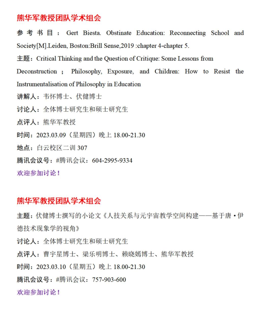 熊华军教授团队学术组会预告(第三期、第四期)