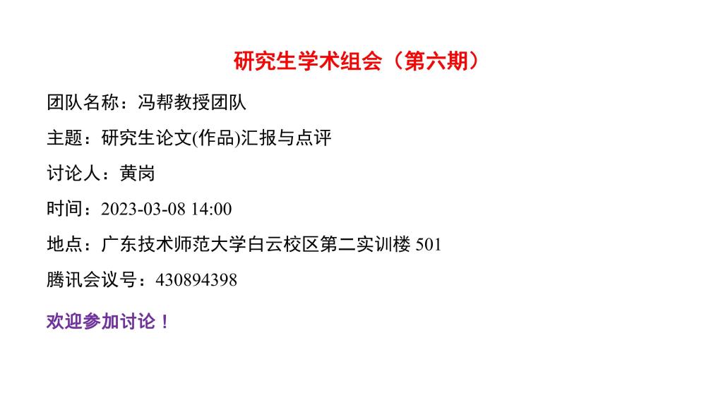 研究生学术组会(第六期)