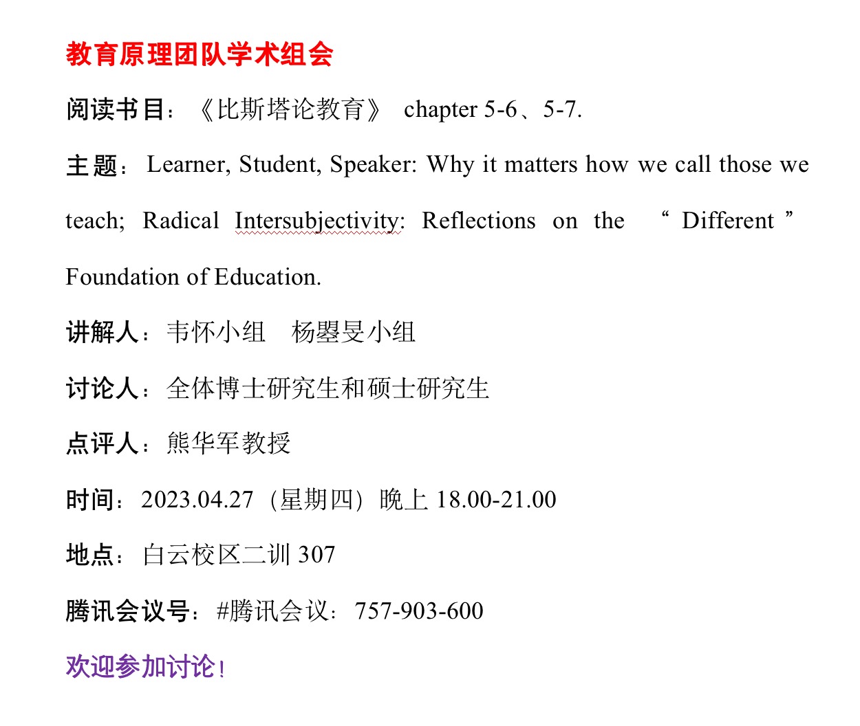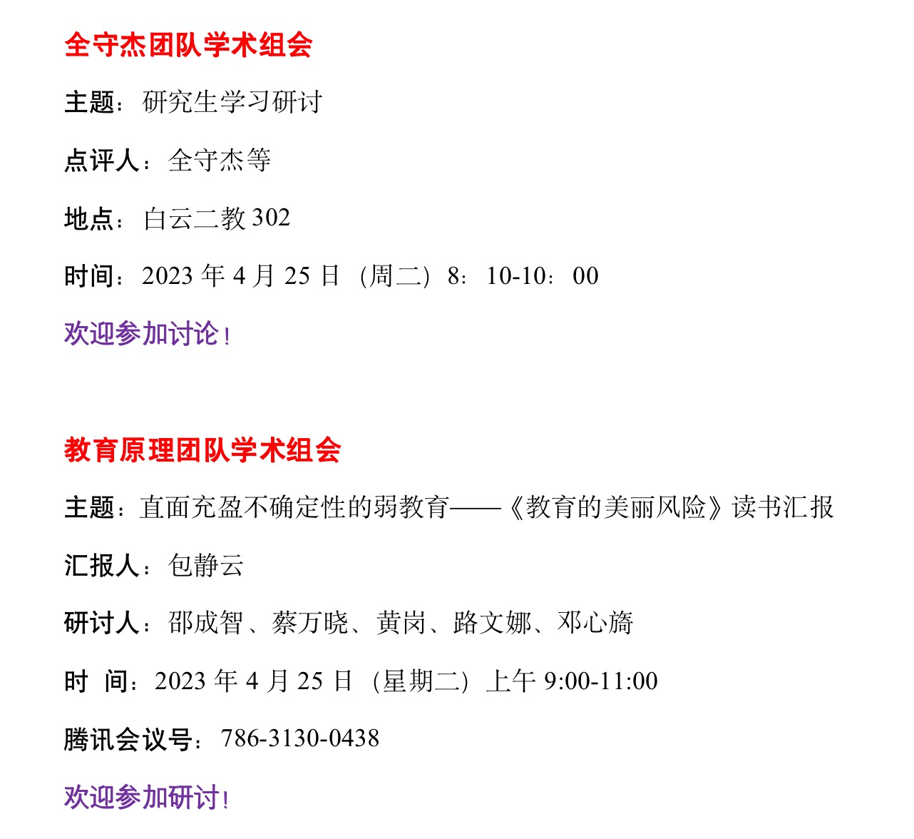 研究生学术组会(第10周 4.24-4.29)