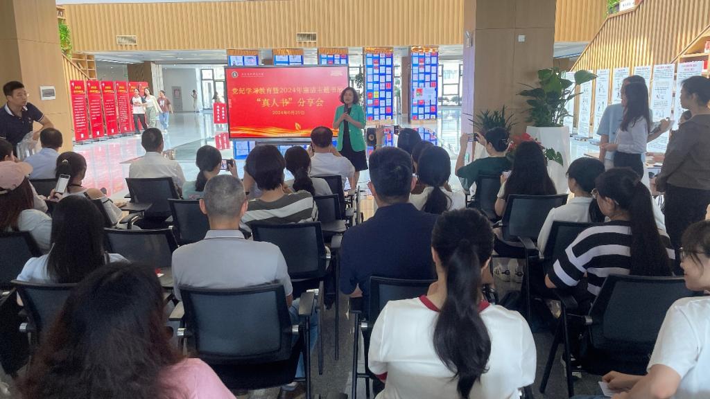 为深入学习贯彻习近平总书记关于全面加强党的纪律建设的重要论述,推进党纪学习教育走深走实,6月20日下午,bevictor伟德官网联合图书馆开展党纪学习教育暨2024年廉洁主题书展“真人书”分享会。活动由图书馆党委同志主持,公司领导班子成员、党委委员、bevictor伟德官网辅导员、研究生党支部书记、员工党员和入党积极分子等人参加了分享会。
