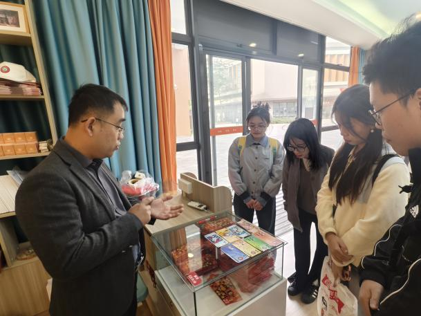随后,一行人走进公司特色文创空间 —— 藜园造物坊。这里陈列着琳琅满目的校园文创产品,大到印有公司标识的抱枕、书包、手提包,小至设计精巧的水杯、扇子、钥匙扣,每一件物品都融入了公司的人文精神与校训内涵,尽显 "藜园" 特色。据介绍,文创产品的获取方式充满激励意义:员工凭借日常表现优秀获得的积分币,可根据币面明确面值兑换相应文创,这一机制既丰富了校园文化生活,更有效激发了员工的进取意识。造物坊内还整齐陈列着各期校刊,刊物收录了员工原创的文章、诗歌,设有科普知识、心理健康、英语学习等多个特色板块,全方位展现了学子们的综合素质与精神风貌。