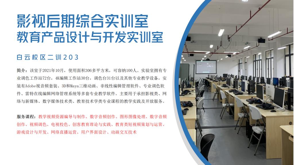 数字媒体实训中心,位于白云校区第二实训楼1.2.4.5.6楼